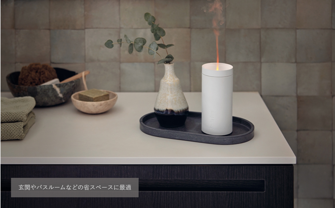 水とエッセンシャルオイルを超音波による振動でミスト状にして、お部屋に香りを拡散させます。本体上部のカバーを開けて簡単に給水ができます。気軽に香りを変更できるアロマキャンドルのように、リビングや寝室、エントランス、トイレなどの様々な生活シーンで活躍します。お好みのアロマオイルを1〜2滴たらして香りをお楽しみください。
